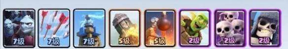 哥布林飞桶:不用多说,可以越过障碍物进行攻击,偷塔一流,是这套卡组中的灵魂,基本3次可偷对面1个塔。