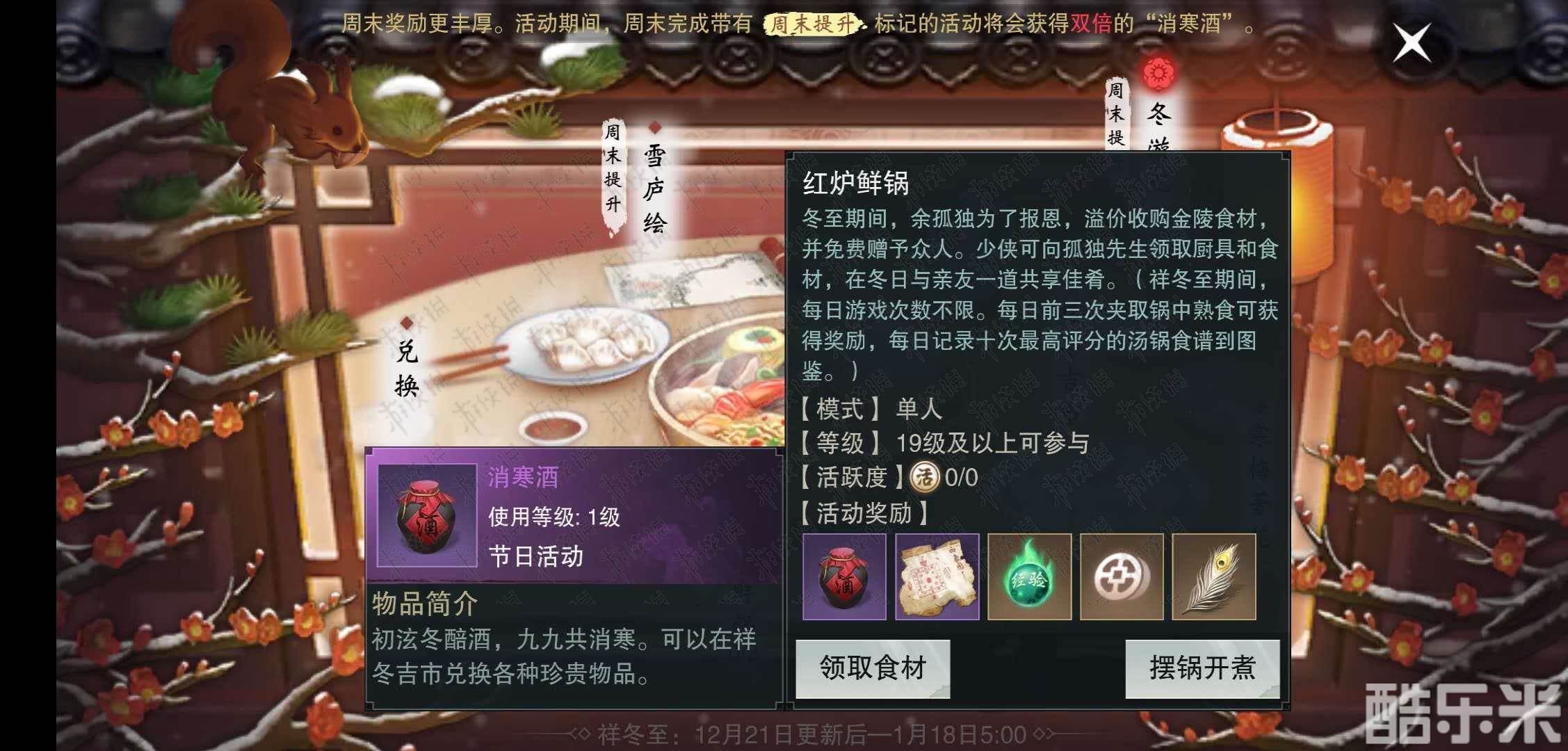 冬至结束时,孤独先生将离开金陵,继续行商。少侠可要记得返还孤独先生的咕嘟锅呀~