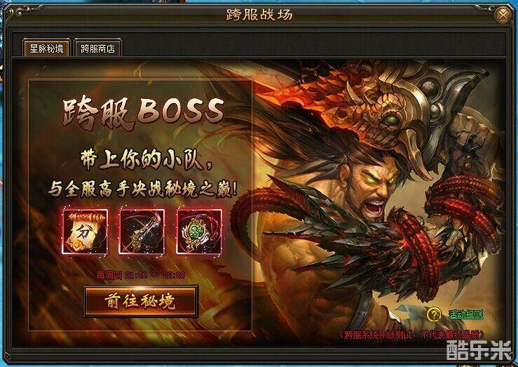玩家要想参加跨服战场活动,先要将自身的战斗力提升到200W战力,然后在每周四晚上的21:00-22:00的时间段,就能通过界面上的“跨服战场”图标,前往星脉秘境地图。星脉秘境会在开服第8天后出现,随着开服时间的增长,星脉秘境会调整进入的战力要求。