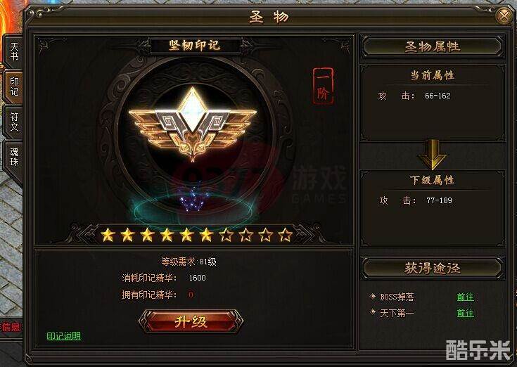 迷失传说印记的升级,要消耗到一些印记精华的材料,而且还需要角色满足知道等级后,才允许升级的。印记精华材料可通过击杀BOSS掉落、参加天下第1活动等途径获取。印记的升级规则,是由星级和阶级组成的。玩家想将印记等级,升满10星后,进阶等级才会提升1级。