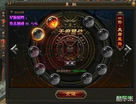 玩家需要按照星脉的逆时针顺序,来将各个星脉激活。星脉每激活10重,就可以解锁一个星位,解锁后可以装备星石。越往后的星脉激活,需要消耗更多的星脉精华材料。玩家提升激活各种星脉,可获得增加攻击加成,不是属性,而且真正的直接攻击百分比加成。另外,玩家解锁星脉后,可以进入符合条件的星脉地图,强大的boss,高级别的装备等着你。