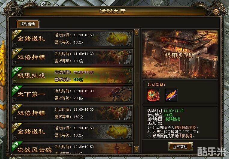 迷失传说灭神极限挑战是一个公共性的PK场景,玩家在活动场景内,可以自由PK,而死亡将会掉落自身的装备。在开服前3天,高层的极限挑战地图里,将会掉落极 品装备、幻羽等奖励,更有高概率掉落一些武器和衣服。