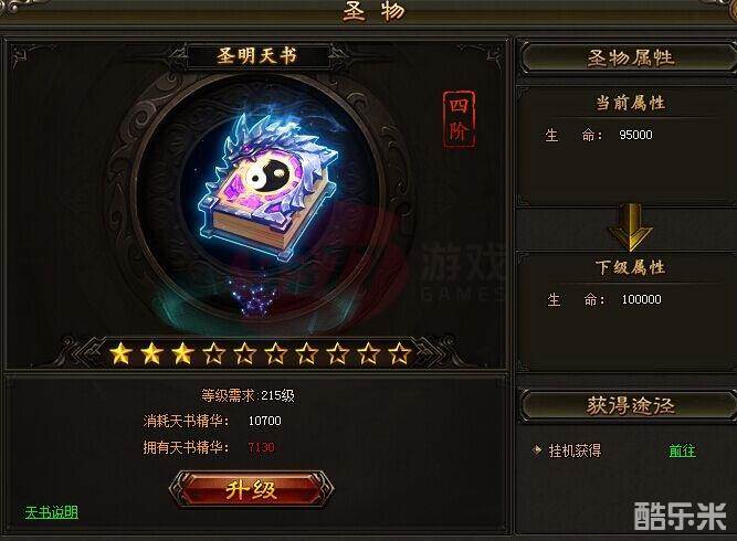 玩家消耗天书残卷且满足相应的等级要求即可升级天书星级了。想要快速升级,那么获取足够的天书残卷是关键哟!