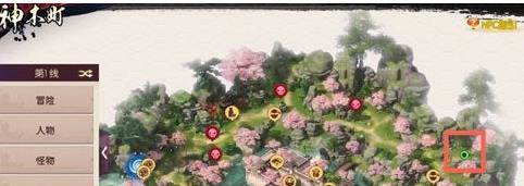 1这个任务的初始地点在神木町这个地图,我们首先要做的就是传送到神木町完成任务,所以首先要点开世界地图,然后传送到我们的新手村神木町,之后来到地图中右边的这个被红框标出来的地点。