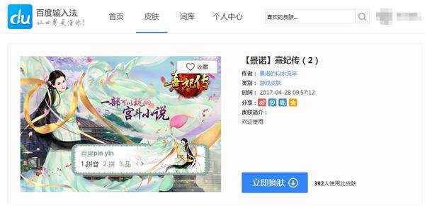 看了那么多精致的输入法皮肤,你是否已有了自己心仪的那一个?事不宜迟,赶紧来下载吧,换肤宫廷style!小主们只需前往百度输入法官网首页即可看到《熹妃传》皮肤下载入口,进入专区尽情挑选你喜欢的皮肤下载即可,经过简易的安装之后就能够使用啦,从此不论是聊天还是上网都能够与宫廷相伴!