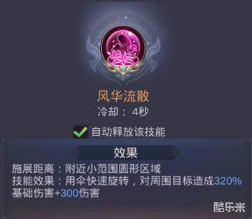 用伞快速旋转,对周围目标造成320%基础伤害+300伤害