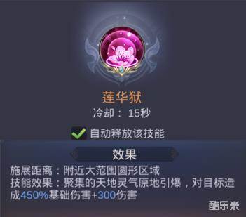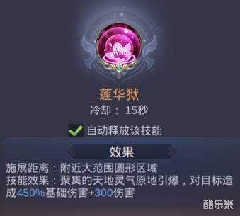技能效果:聚集的天地灵气原地引爆,对目标照成450%基础伤害+300伤害