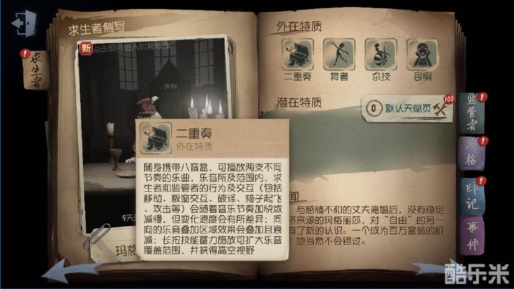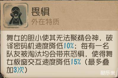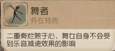 第五人格舞女有四个外在特质,主动技能二重奏,有四种效果