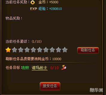 各位玩家朋友可以通过,刷新任务改变星级,一般我们刷新到四星到六星就可以了不要追求高星级,以为刷新任务是需要花钱的,降妖除魔任务的难度都不是很高,一般都是去打一些小怪,完成的速度一般都很快,一般降妖除魔任务的怪物种类变化不是很大,玩家可根据实际情况酌情与几个好友一起组队进行任务,可以节省很多时间。