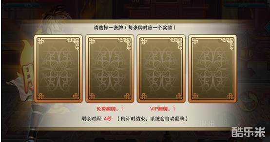 决斗结束后可进行翻牌获得奖励,VIP可额外获得一次翻牌机会;