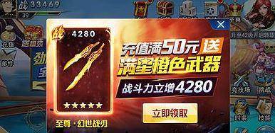 而橙装和紫装一样,每一次慢慢升级自己的装备,直到自己的蓝装升为紫装,紫装升为橙装,这个路途很漫长,而且材料等,如橙色进阶券也基本只有礼包和后面的高等级关卡才会出现,所以说,还是得不断的去刷副本。但现在官方活动,只需要充值满50,就可以立即获取满星的橙色武器,战斗力飚增4280。相信很多小伙伴都已经拿到心仪的橙装了吧。