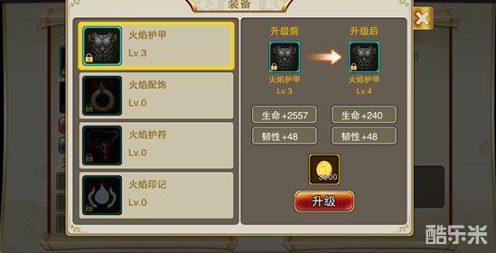 化身有四件独有的装备,同样可以通过升级、进阶等提升战力.