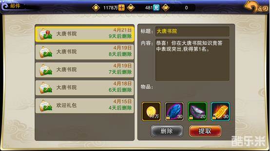 活动结束后奖励会以邮件的方式发送,排名越靠前,奖励越丰富。