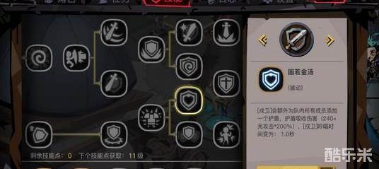 三连击→体质增强→战斗治疗/求生欲望(当点出不屈后舍弃换战斗)→格挡大师→反击→钢铁意志→戍卫→固若金汤→不屈