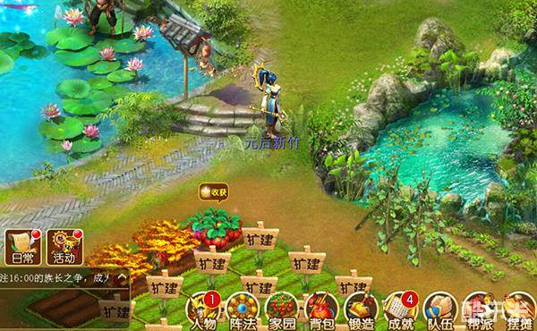 “家园”玩法简单有趣,产出的作物可用来兑换丰富的游戏道具,如经验、金币、宠物精魄等。每一次收获作物可获得相应的家园经验值,经验值可用来升级家园。家园升级后可扩建家园,收获翻番!