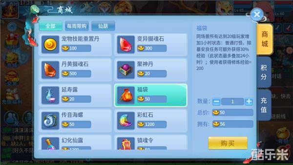 2.使用福袋。在商城可以花50金子购买福袋,作用是1小时内增加30%除暴经验,最多叠加24小时。如果没有金子的话可以叫帮会会长购买,也可以每晚12点刷新任务后,去除暴任务的NPC那蹭别人的福袋效果。