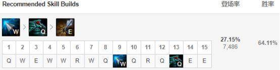 VN的加点主W副Q,有R点R,韩服平均胜率64.11%。