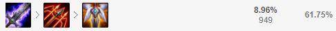 VN在8.24b版本中胜率在后期有着不错的提升,并且相对稳定,都高于AD英雄的平均线,事实证明在8.24b版本中拿VN来打输出效率还是非常高的。
