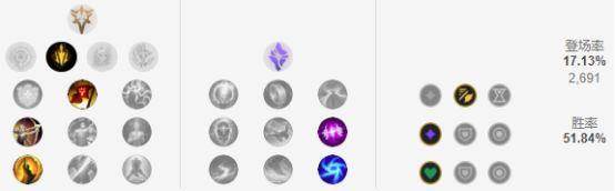 图奇的胜率虽然相对下降了一些,但是依旧保持在第六位,老鼠的登场率在近期版本中一直都非常稳定,这个稳定说明了大家对图奇的热度不减是非常值得用来排位冲分的首选。