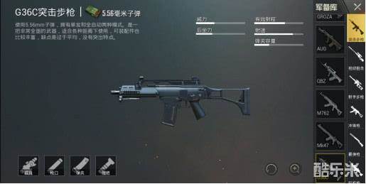 新地图里更新了专属武器突击步枪 G36C,搭载5.56mm子弹,可以装瞄具,枪口,握把,弹夹4个配件。伤害方面G36C与M416伤害相差无几,在无防具的情况下射击头部只需一枪,脖子两枪,胸口肩膀需要三枪,胳膊与腿五枪六枪不等,手掌则需要九枪才能击杀。