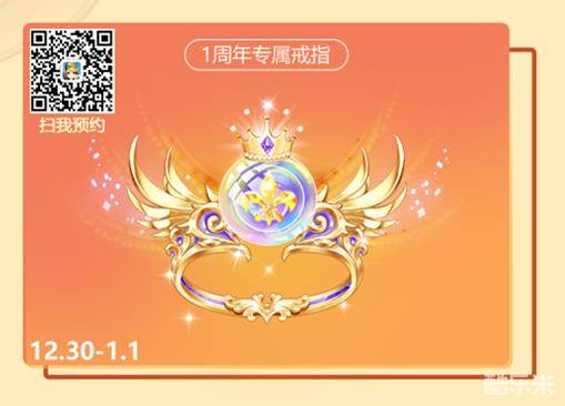 一周年纪念戒指预约轻松领!即日起至2018年12月30日,玩家扫描二维码即可预约周年庆典领取周年预约蛋糕, 2018年12月31日-2019年1月1日登录游戏可在游戏内兑换1周年纪念戒指!具体活动内容如下: