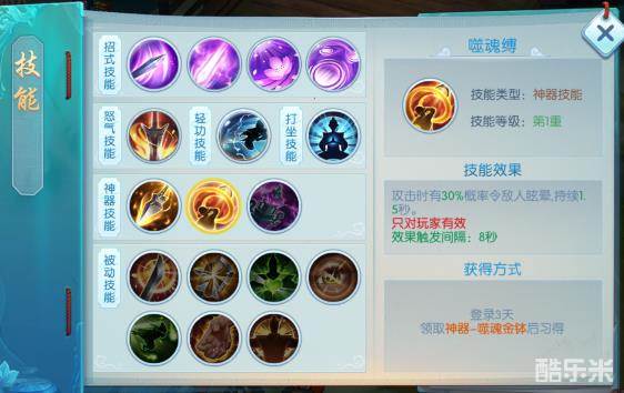 (1)每领悟一种神器,即可获得一个单独属于该神器的特殊技能;