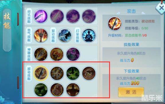 1)消耗不同数量的同类型《被动技能书》,可以升级被动技能,获得更高角色属性。