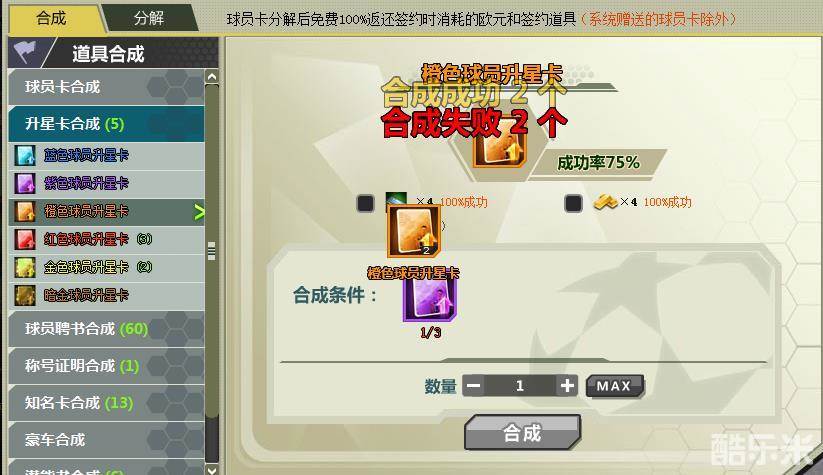 一般玩家会嫌麻烦而一键合成全部升星卡,我想说在不用任何工具下只有75%的合成成功率来说是个浪费的举动。虽然说成功率全看人品但是一张一张升的成功率绝对要高于一键合成全部卡。大家不妨试试虽然可能需要多点时间。