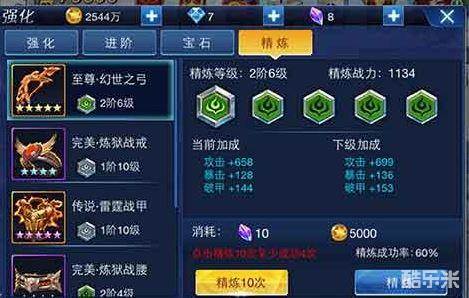 举例:保底成功5次,每次消耗10精炼石,意思是说玩家要准备100精炼石,然后点击连续精炼10次,此时才能完成保底精炼5次。