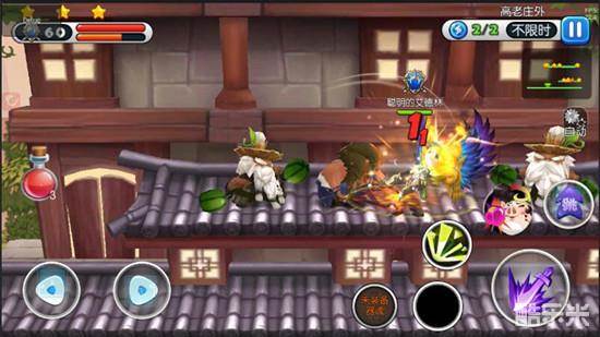 高老庄可是个大户人家,戒备森严,当门外的守卫发现敌情的时候,院内的高手就会出手,记住,此时的敌人可不是像门外的守卫一样,这时候的士兵拿的是兵器,而且数量巨多,被砍中一刀,就会被连续击打,我们必须在围攻之前突出重围,方可获得战斗的胜利。