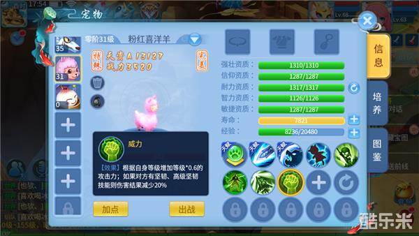 喜洋羊在游戏里的设定是物理AOE输出,专属技能“喜洋羊之声”可以对三名敌人造成伤害,并概率附加减速效果。而且五围的成长里,强壮、耐力和敏捷的成长都不错,这就保证了喜洋羊拥有不错输出的同时,还有一定的生命和速度,对宠物来说都是非常实在的。