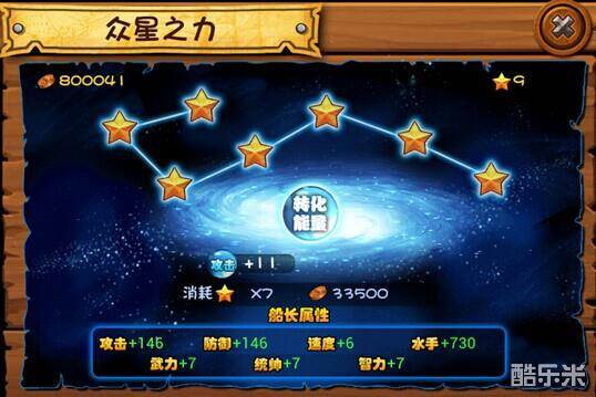 铜币另一个用途就在于“众星之力”的消耗了,每次将关卡获得的星星转化为能力,都需要消耗一定的铜币,所以没铜币作为能量转化的基础,获得再多的星星也是没用的哦。