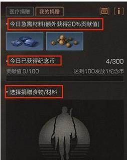 4、通过向研究人员捐献材料、救助难民、抗击BOSS可以获得纪念币。(推荐使用当天急需的材料,可以更快的获得纪念币)