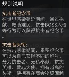 5、增加抗击者物资库,获得更多纪念币可以解锁称号(如抗灾英雄)以及物资库的等级,物资库等级越高,纪念币就可以兑换的物资就越丰富;
