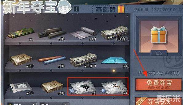 4、新年夺宝抽奖,通过集训等新年任务可以获得奖杯,奖杯可以抽奖活动限定配方,满足兑换次数还可以获得额外奖励(如兑换5次后可以获得一次额外奖励),并且这个奖励在活动期间可以无限循环。此外活动限定武器有进化特技,而且每天第一次抽奖免费。