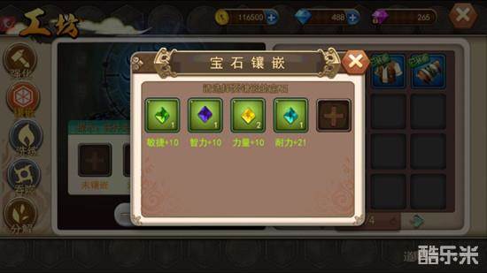 游戏内每件装备都可以进行宝石镶嵌,玩家可以根据自身主要属性选择适合自己的宝石进行镶嵌强化,大大提升角色的战斗力。