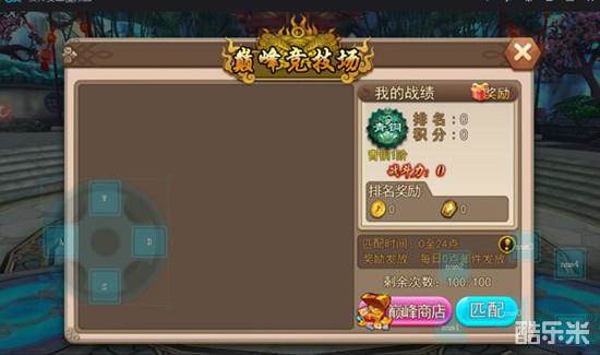 进入竞技场页面,可以从右边看到玩家角色的战斗力,积分和排名,以及在竞技场所处的称号。
