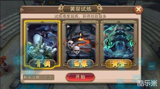 黄泉试炼是历练的副本之一,黄泉试炼分为3个等级,等级越高,难度系数越大。