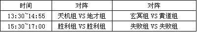 每月的第2周(周日)13:00截止报名,同时将每个阶次(等级段)的玩家按照总经验尽量平均的分配到4个组别中,分别是天机组、地才组、玄冥组、黄道组。