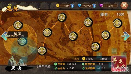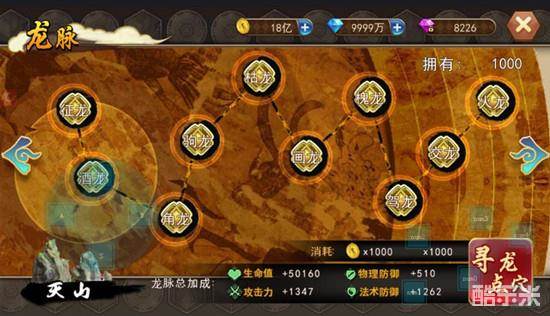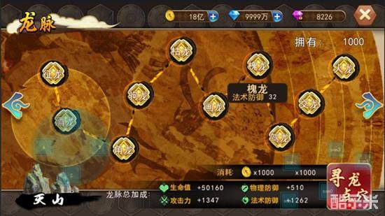 天山的寻龙,大大的增加了角色的生命值、攻击力、物理和法术防御,此加成能够极大的发挥龙脉的作用,当然,龙脉的强大需要时间来铸就,在天山之后,还会有怎样的龙穴出现,期待龙脉图腾再现江湖!