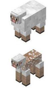羊的尺寸为1.25方块高,0.625方块宽和1.4375方块长,而且通常会自然产生以下色种:白、黑、灰、淡灰、棕、和粉红。杀死一只成年羊会掉落一个羊毛方块,而每次给羊剪毛能获得1-3个羊毛方块。杀死小羊则什么都得不到。