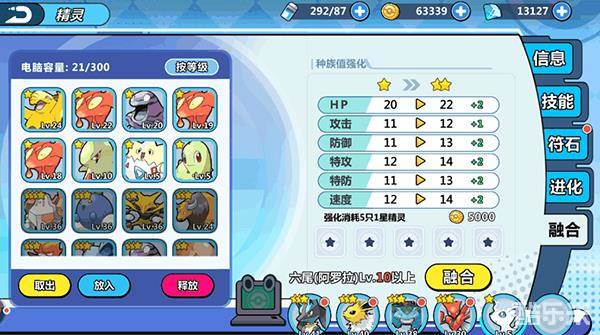 精灵升星:可以说这又是游戏人性化的一大设定!可以不用氪金平民也能轻松升星!游戏中精灵可以融合给精灵升星提高品质!每次升星需要消耗同等星数的精灵5只,也就是1星升2星需要要求等级10级融合其他1星精灵5只,2星升3星需要要求等级20级融合其他2星精灵5只,以此类推。就是说普通玩家可以靠时间不断的抓精灵给主力精灵升星来用!目前没发现除了肝时间抓精灵升星外还有其他的便捷升星的途径,可以说是平民的一大福利了!!!