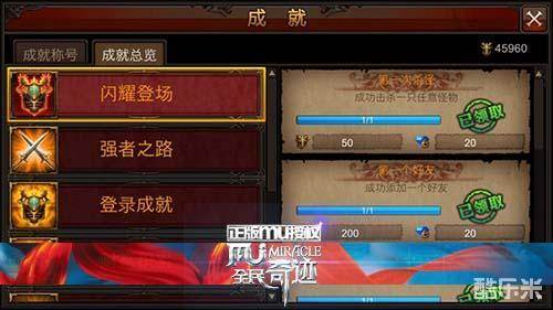 由韩国网禅正版授权,北京天马时空与上海恺英网络联合开发,恺英网络独家代理发行的手游新贵《全民奇迹MU》1.3.0全新版本君临天下现已震撼上线!对于游戏中最为关键的成就系统,相信很多玩家也并不知道其中奥妙。接下来就让小编带领大家走进《全民奇迹MU》中的成就系统,来一次大解析吧!