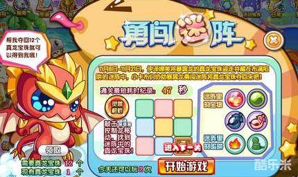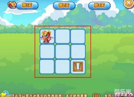 敲击键盘←↑→↓控制暴翼龙移动!在移动暴翼龙之前,我们有5秒的时间可以看清迷阵各个格子放置的东西哦,在最快的时间内找到一条既能找到真龙宝珠又不会掉血的路线找到出口你就过关啦!