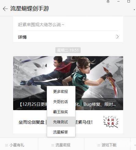 通过邮件可以加入流星蝴蝶剑先锋测试玩家群,并获得测试服专属激活码。激活成功后即可登陆先锋测试服进行游戏
