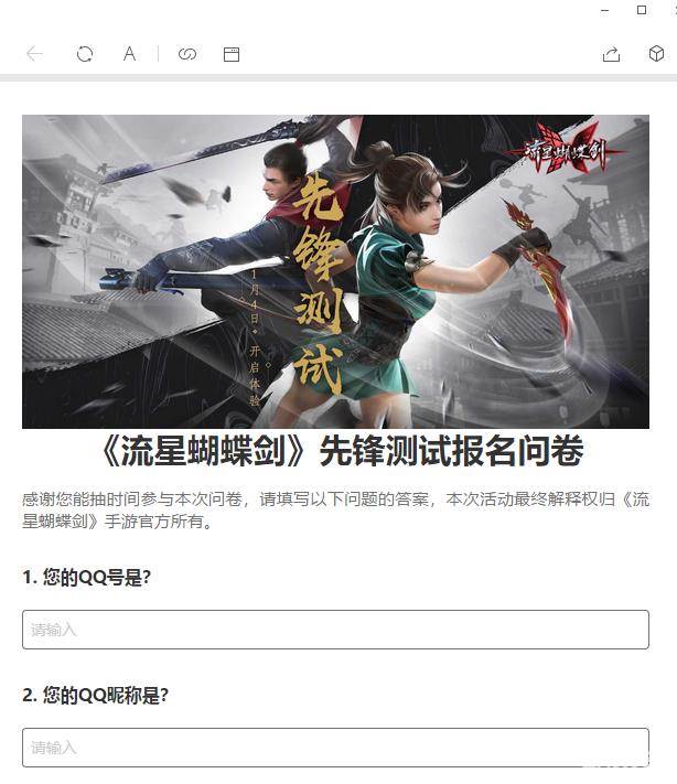 限额开启《流星蝴蝶剑》先锋测试服报名启动