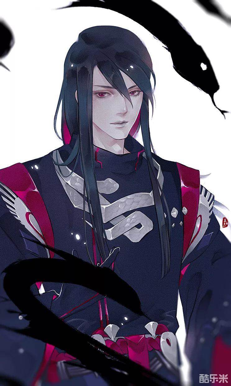 蛇神从黑暗中走出,袖摆层叠缀以蛇纹,尖牙蛇信屏息以待。猩红与黑紫交错,在黑暗中艳丽而危险。