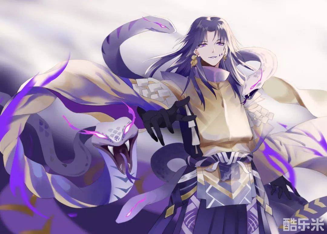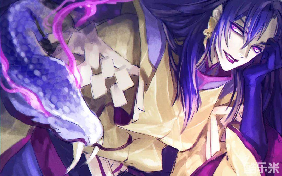 妖冶的紫色似要浸透一切,骸骨执于八岐大蛇的指尖,蛇展露出獠牙,瞳孔化作流焰。沉睡的神,已经苏醒。