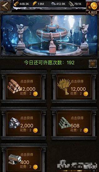总的来说,在许愿池购买资源是比较划算,尤其是跟直接用金币购买资源相比,因此也是土豪玩家刷资源的主要去处。如今,许愿池每天最多许愿200次,不论是免费许愿,祝福许愿还是金币许愿都包含在这200次之内。不得不说,这种改变还是为了限制土豪玩家的。因为普通玩家一天是很难许愿达到200次的,在设立了上限之后也避免了土豪玩家无上限的刷取大量资源,从而破坏游戏平衡。