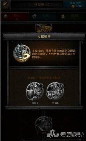 主动技能肯定是有多少点多少,立即返回这个技能顾名思义是让所有外出,但是不包括正在参战的队伍立即返回玩家的城市,比如有时候玩家把队伍弄丢了找不到了,又急着防守主城,这是立即返回就起到作用了。